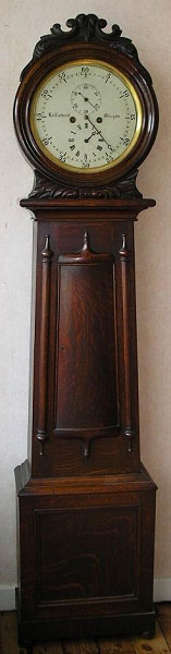 A Rare Scottish ‘Drumhead’ Regulator. The case has superb proportions and has been made with great skill from solid Oak. The movement is typical of high quality Scottish clockmaking, with a Deadbeat escapement and maintaining power. It has a very large brass faced Pendulum Bob and unusually, features an hourly strike on a bell. Made and signed by Hollinwood of Glasgow circa 1850-60 (shown unrestored). Fully Guaranteed.